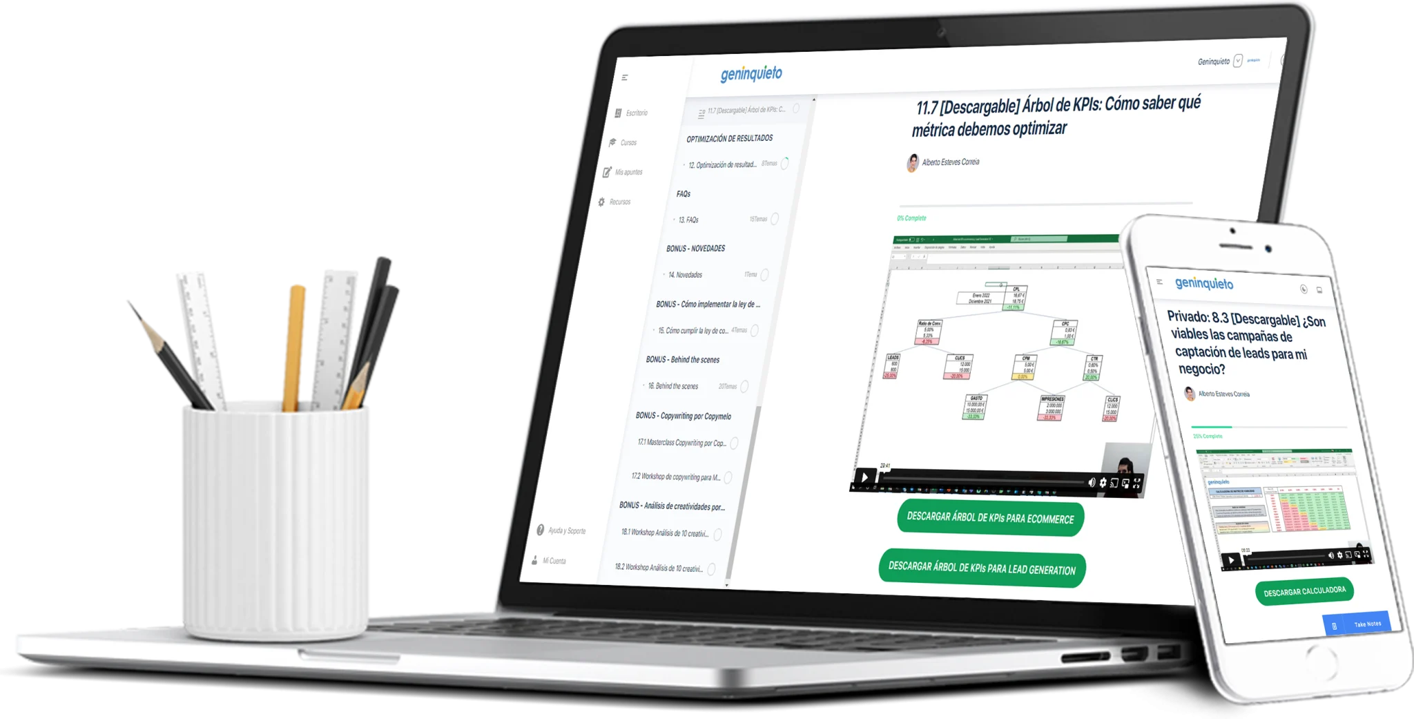 En su mayoría se trata de lecciones en vídeo donde te explico el paso a paso mientras comparto pantalla para que puedas replicar cada estrategia.